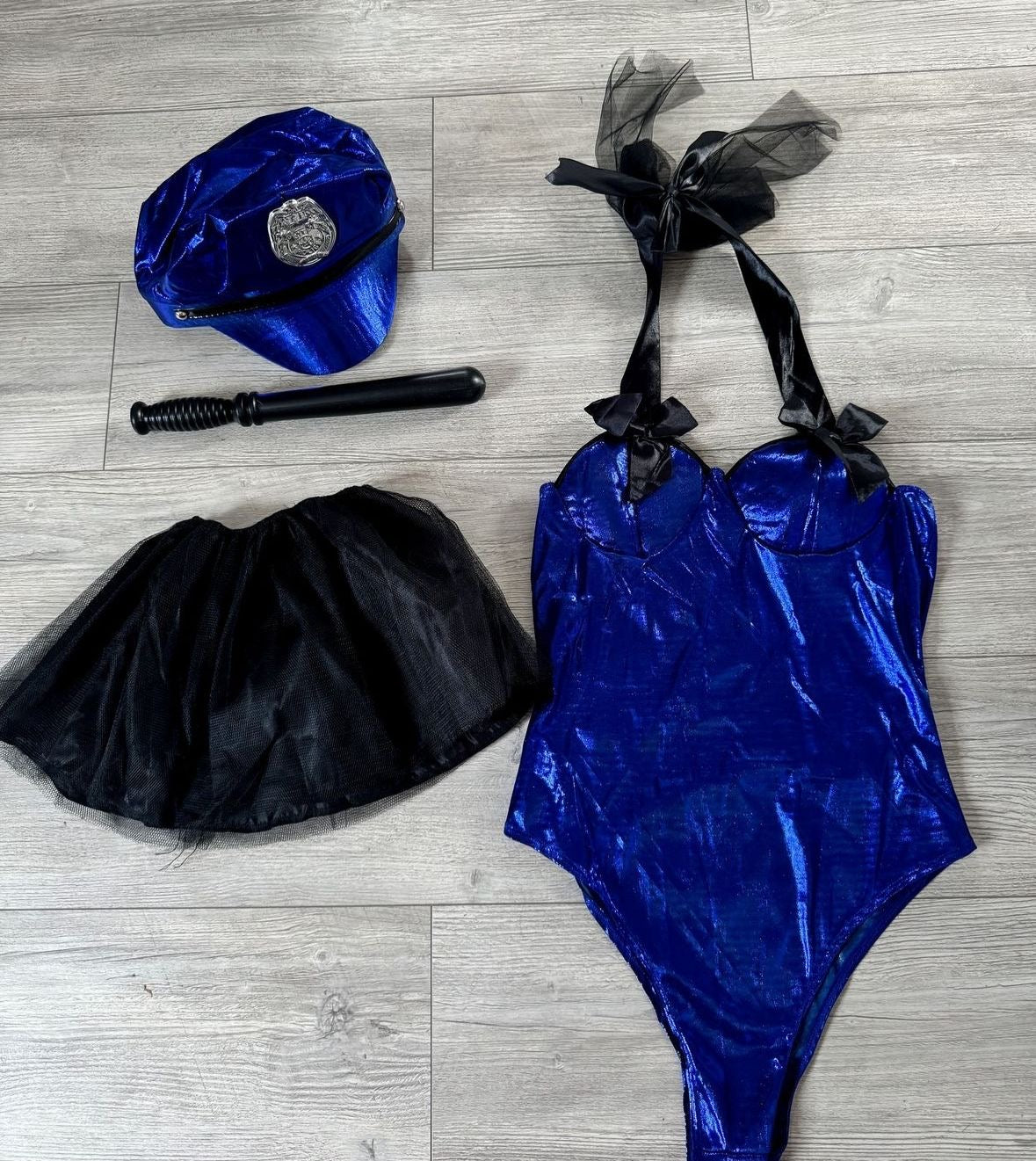 ✨ Incluye: esposas + bate + sombrero + body + falda